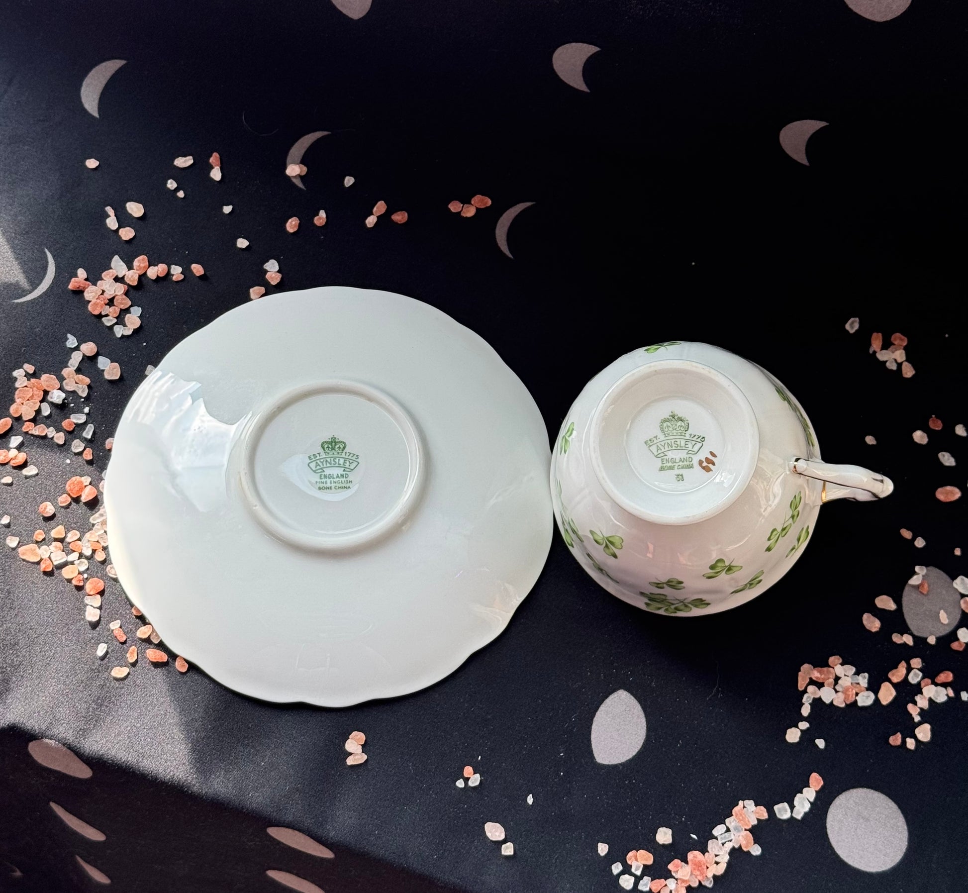 Hand-poured into a shamrock-kissed Aynsley bone china teacup, this pure beeswax candle glows with a warm, golden light and the soothing crackle of a wooden wick. A charming blend of elegance, comfort, and just a hint of mystical good fortune.